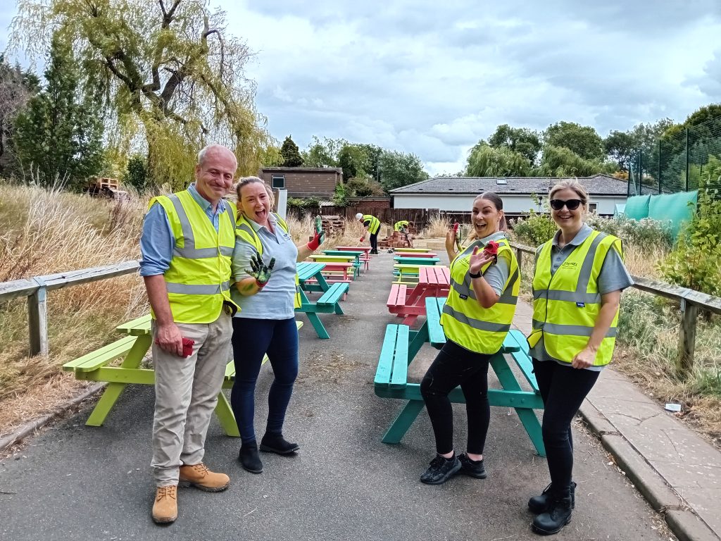 Alongside the main works, 12 Stepnell volunteers dedicated two days to revitalising the school’s unused eco garden, transforming it into a safe, welcoming outdoor space. The refreshed garden includes repaired seating, new planters, bug hotels and extensive landscaping, and has been designed specifically to support SEND students by providing a calming environment for learning and wellbeing.